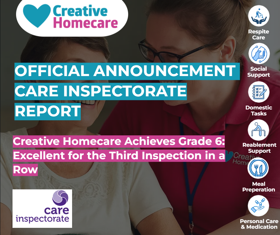We’re absolutely delighted to share that Creative Homecare has achieved a Grade 6: Excellent rating for the third inspection in a row! Following our latest unannounced Care Inspectorate visit in October 2025, we were awarded: ⭐ 6 – Excellent for Supporting People’s Wellbeing⭐ 6 – Excellent for Our Staff Team⭐ 5 – Very Good for Care Planning This reflects the compassion, professionalism, and dedication of our support workers who deliver high-quality, person-centred care Monday to Friday across Falkirk & Stirling. Creative Homecare is a paid-for homecare service, and as a community-owned social enterprise, we reinvest every penny of profit directly into Strathcarron Hospice.This means the support you purchase for yourself or a loved one also helps Strathcarron raise the £19,452 needed every single day to continue providing its vital hospice care to the community. 💙 We are incredibly proud of our team and deeply grateful to every family who shared such positive feedback with inspectors. 👉 Read the full Care Inspectorate report:https://creativehomecare.co.uk/care-inspectorate-grade-6-excellent-report/ 📞 01324 827394📧 administrator@creativehomecare.co.uk🌐 creativehomecare.co.uk #Grade6 #CareInspectorate #Falkirk #Stirling #HomecareExcellence #CreativeHomecare #StrathcarronHospice #SocialEnterpriseCare #PaidForService