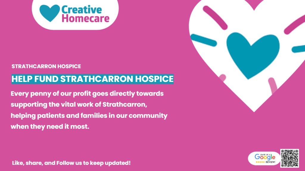 Did you know? Choosing Creative Homecare means you’re not only receiving high-quality, compassionate care for yourself or a loved one ,you’re also helping fund Strathcarron Hospice.